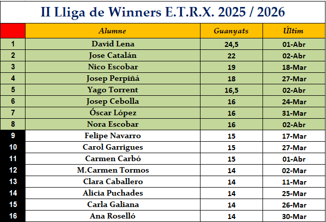*La classificació completa i actualitzada de la Lliga de Winners,