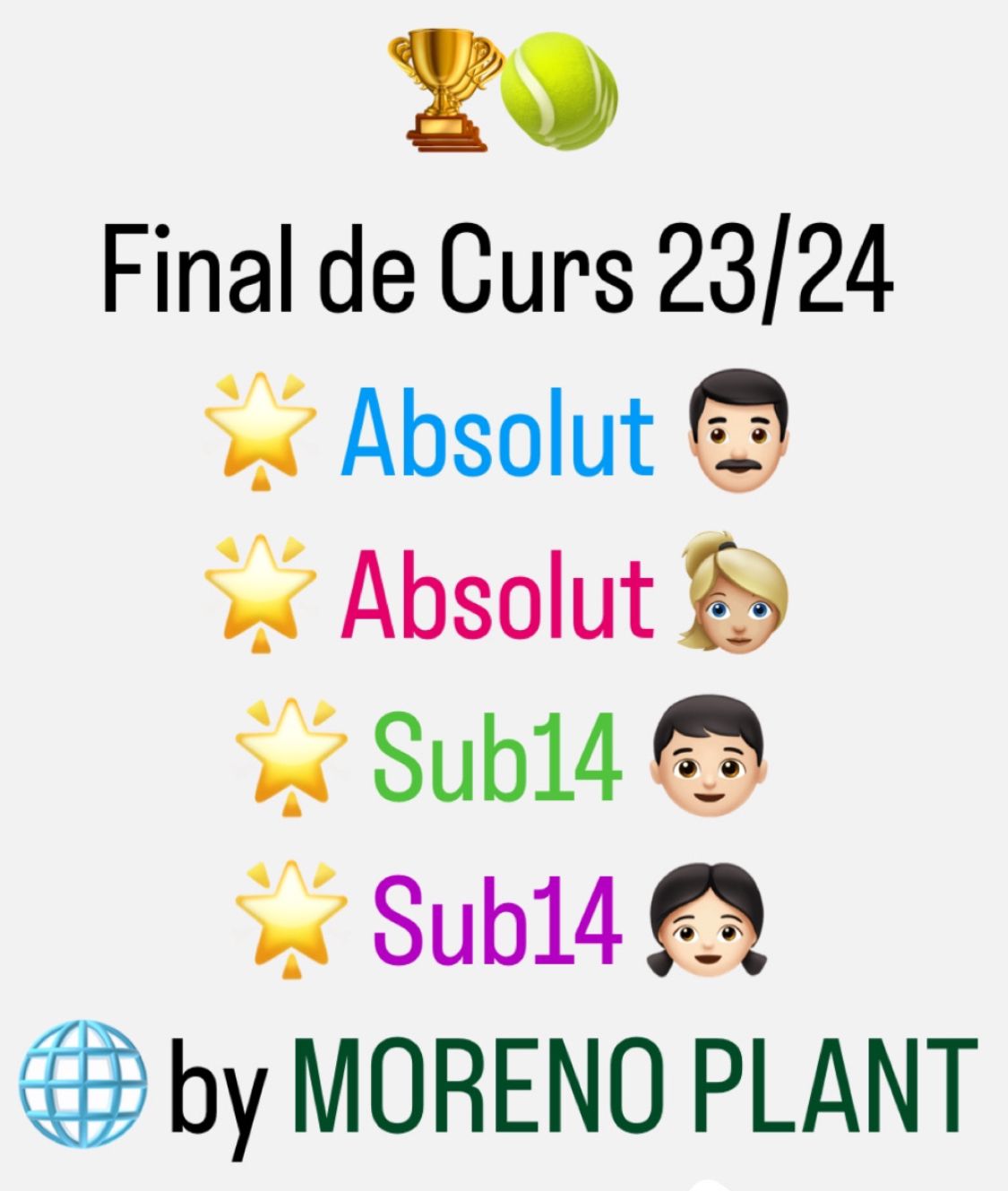 Hola tenístes, Donem inici al campionat “Final de Curs 23/24” que posarà punt final a un nou curs tenístic a Polinyà & Albalat. Una volta realitzat el sorteig de les distintes[…]
