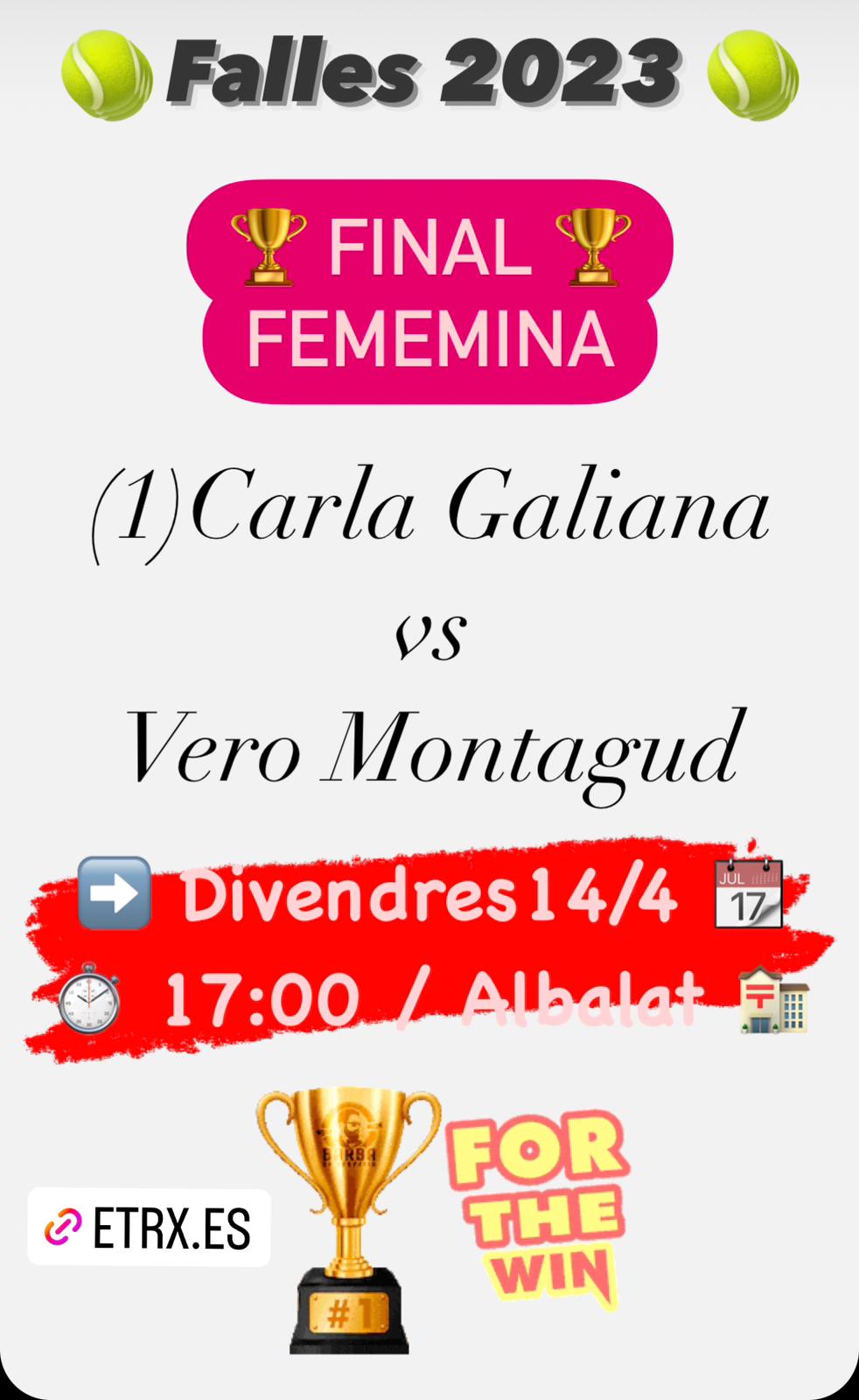 🎾Hola tenístes🎾 🔜 DEMA ES JUGARÀ LA FINAL FEMENINA “FALLES 2023” 👱🏼♀️🏆 💚 Coelme Babel S.L.🏘️ Albalat de la Ribera 🏆 FINAL 👱🏼♀️⏱️ Divendres 14/4 – 17:00 h.(1)Carla Galiana – Vero[…]